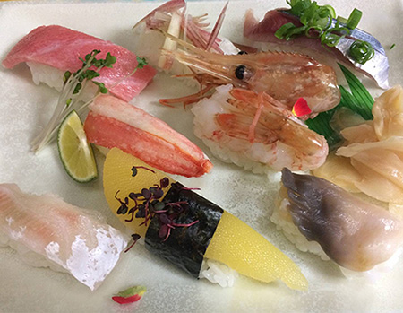 (寿司盛り合わせ、天麩羅、小鉢、味噌汁、香の物、コーヒー又は水菓子)
